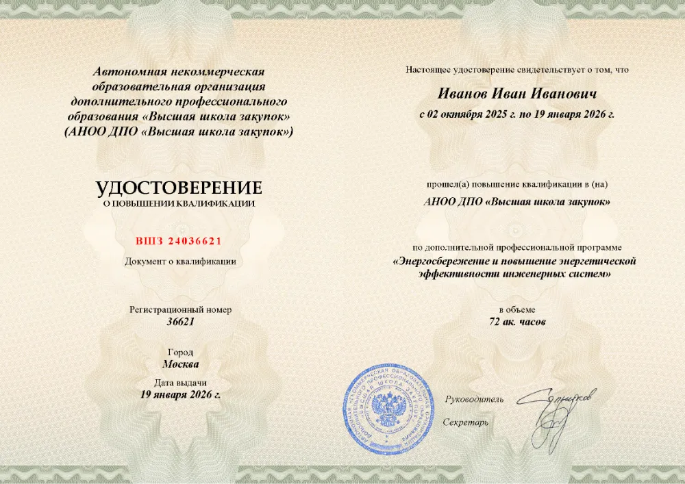 Программа повышения квалификации (72 часа) по энергосбережению и повышению эффективности инженерных систем в в Твери. Освойте современные методы аудита, энергоменеджмент, инструменты оптимизации и цифровые технологии для снижения затрат в зданиях и на предприятиях.