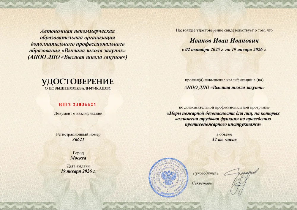 Повышение квалификации, 32 академических часа, 3 модуля: нормативно-правовые основы и обязанности инструктора, содержание и методика проведения противопожарных инструктажей, практические знания и навыки для эффективного обучения персонала. Онлайн-обучение в в Твери с итоговой аттестацией.